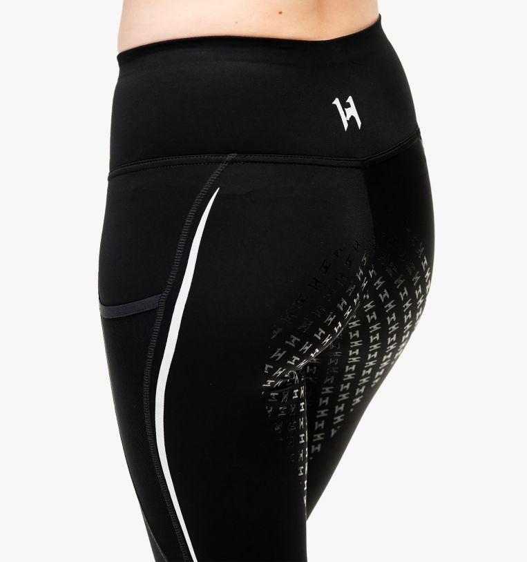 Deep mesh thigh pockets hold your phone securely in place as you ride, as well as allowing quick screen checks without having to fully remove your phone. For extra grip in the saddle, the tights feature a silicone full seat in Horseware® logo print.