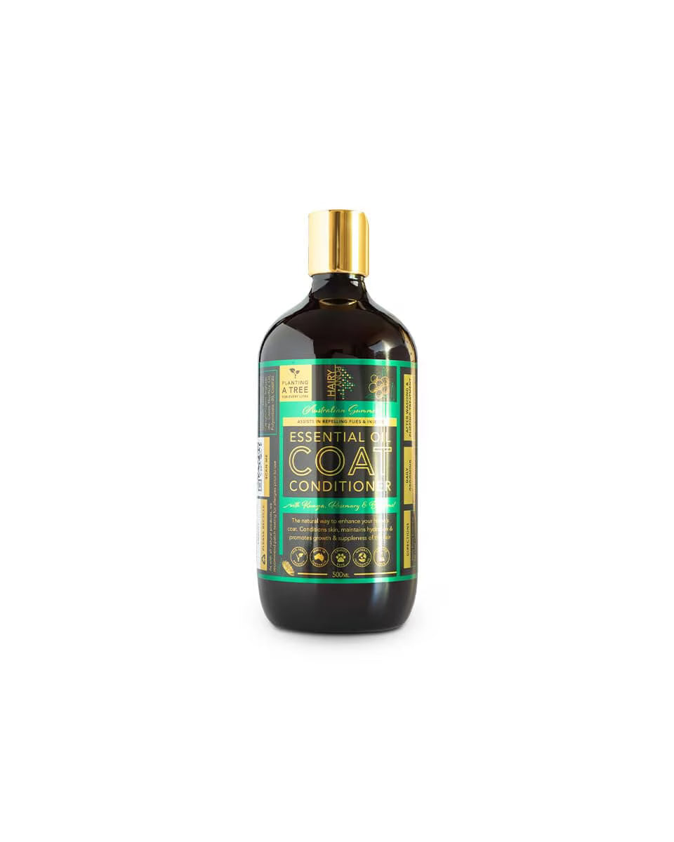 Essential Oil Coat Conditioner from Hairy Pony works like liquid gold by enhancing your horse's coat shine. Formulated with Rose Geranium, Ylang Ylang & Cedarwood Atlas pure essential oils, this product helps maintain hydration, conditions the skin, and promotes hair growth.