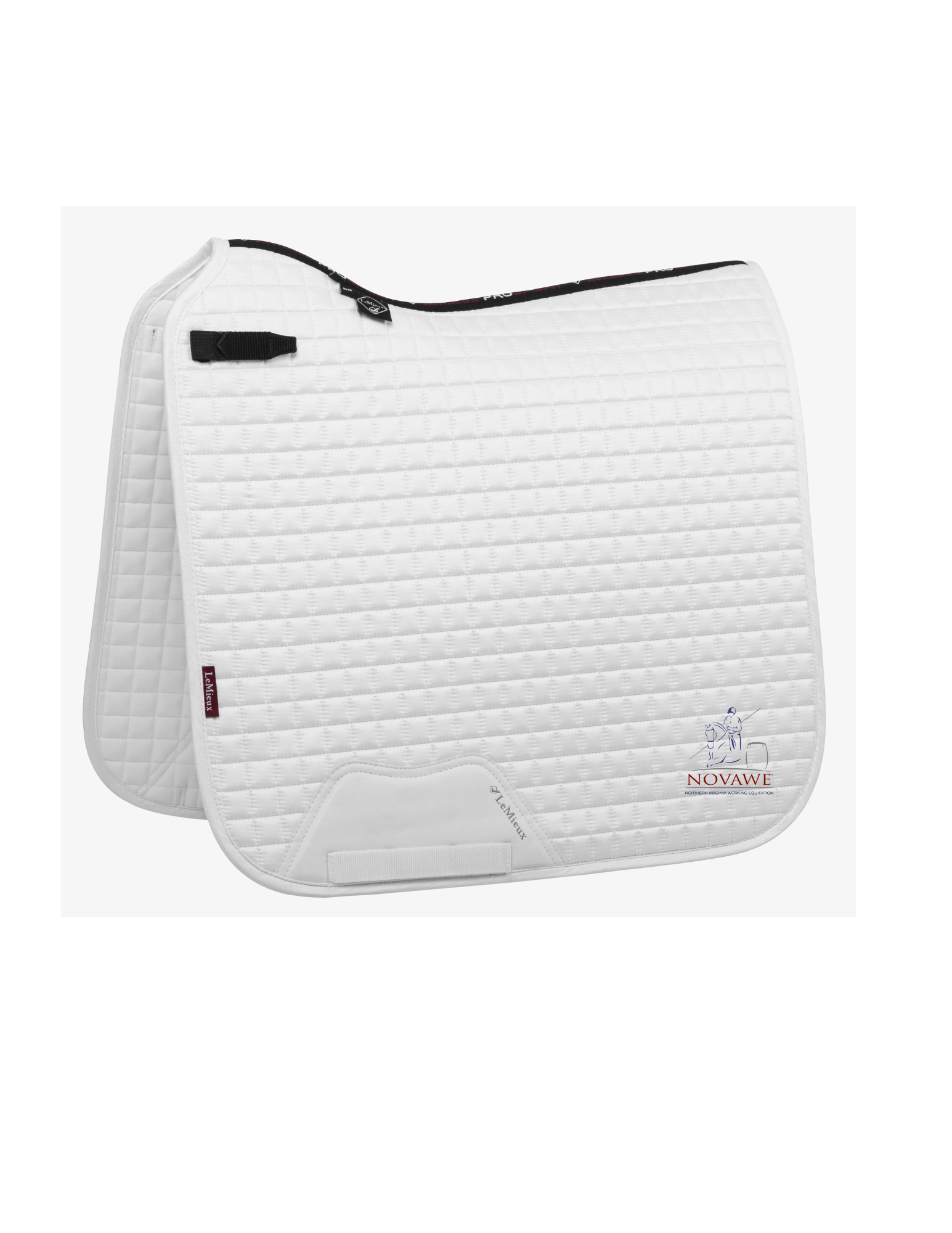 Dressage: Now with our Super Soft Suede Binding & New PU Leather girth protection area, this beautiful suede Dressage square sets new standards in style & comfort. Now established as the iconic LeMieux look when combined with matching polo bandages and Ear Bonnets there are colors to suit most horses and tastes. Designed to fit a wide range of dressage saddles with its high wither and elasticated D-Ring tabs .