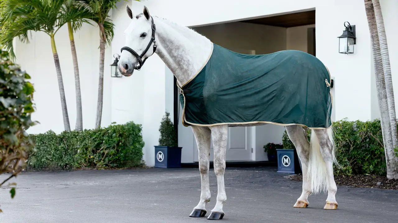 A smart, lightweight mesh dress cooler that's ideal for use at competitions, shows and events. Created in classic colours with smart contrast binding and a traditional braided cord hip ornament, it elevates your look to elite level.